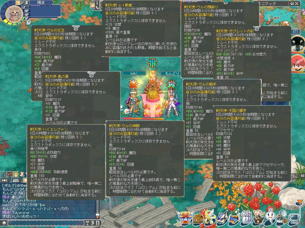 絶対なれよ!!!!!と言われて慄いたひなです。 ゚+。:.゚ バン(o´ω`人´ω`o)チャ ゚.:。+゚ 今現在メンテです(。´・(ェ)・)(・(ェ)・`。)ネェー とりあえずチャイナかメイドかと言われればメイドの方がいいんじゃないでしょーか。>ラストメィさん する事なくて暇なんですよね。 ALOにいる時は、嫌がる某Lさんに無理矢理なしで組ませてひたすら回復してます。(狩り あとはとるちゃとインスとかヾ(*´∀`*)ノキャッキャ♪ 70+弓がなっっかなか出ない。 70+弓が出たらもう迷わず弓に転職するんですけど。 あ、特にレアスキルが出たとかではないですw 続きはちょっと最近の悩み事?w |